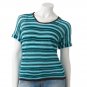 A thin, striped pattern and an open-stitch give this juniors' top trendy style.
