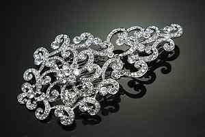 BRIDAL WEDDING BRIDE SILVER AURORA CLEAR RHINESTONE CRYSTAL VINTAGE HAIR COMB