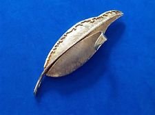 VINTAGE LARGE LOVELY TEXTURED & SHINY GOLD TONE LEAF PIN 3 1/2" X 1"