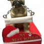 From E & S Pets comes their statue Christmas ornaments. Adorable figurines of your favorite breed. Dog itself is approx. 3" high. Sitting on their little red box base they are 4"H. Base of box is 2 1/4"W by 2 1/2"D and 1"H. The little bone in the dogs mouth can easily be personalized with a sharpie. Dog is made of resin, the red box is made of cardboard.